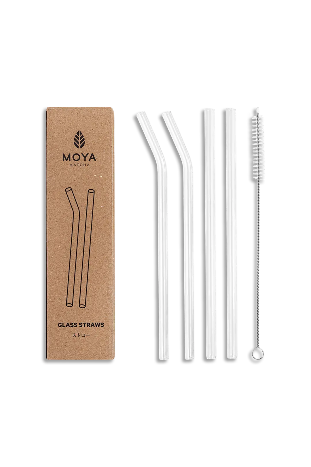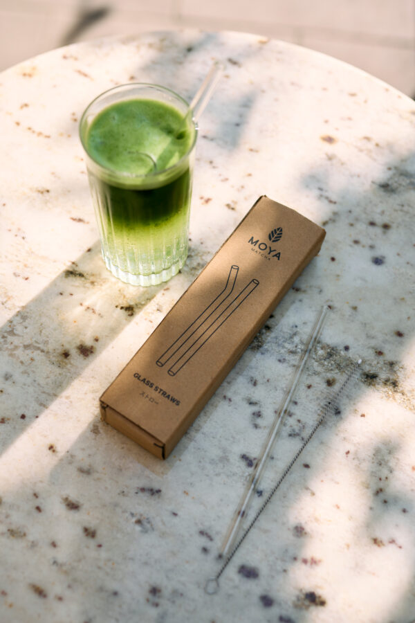 Et sett med fire gjenbrukbare sugerør laget av slitesterkt borosilikatglass. Perfekt for servering av iskald matcha, limonade eller matcha-tonic – de fungerer også utmerket til tykkere drinker. Settet inkluderer en praktisk rengjøringsbørste for å holde dem skinnende rene.