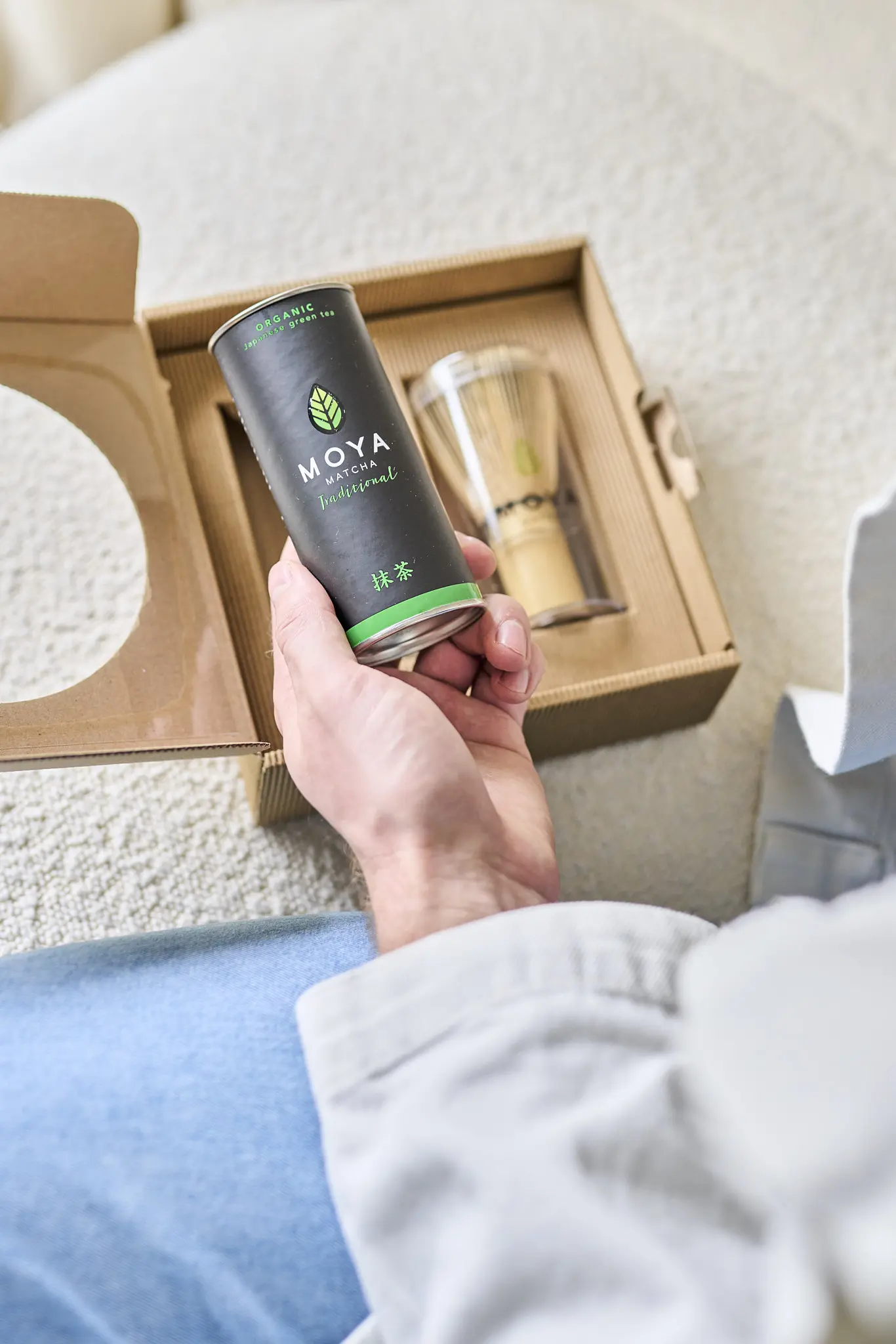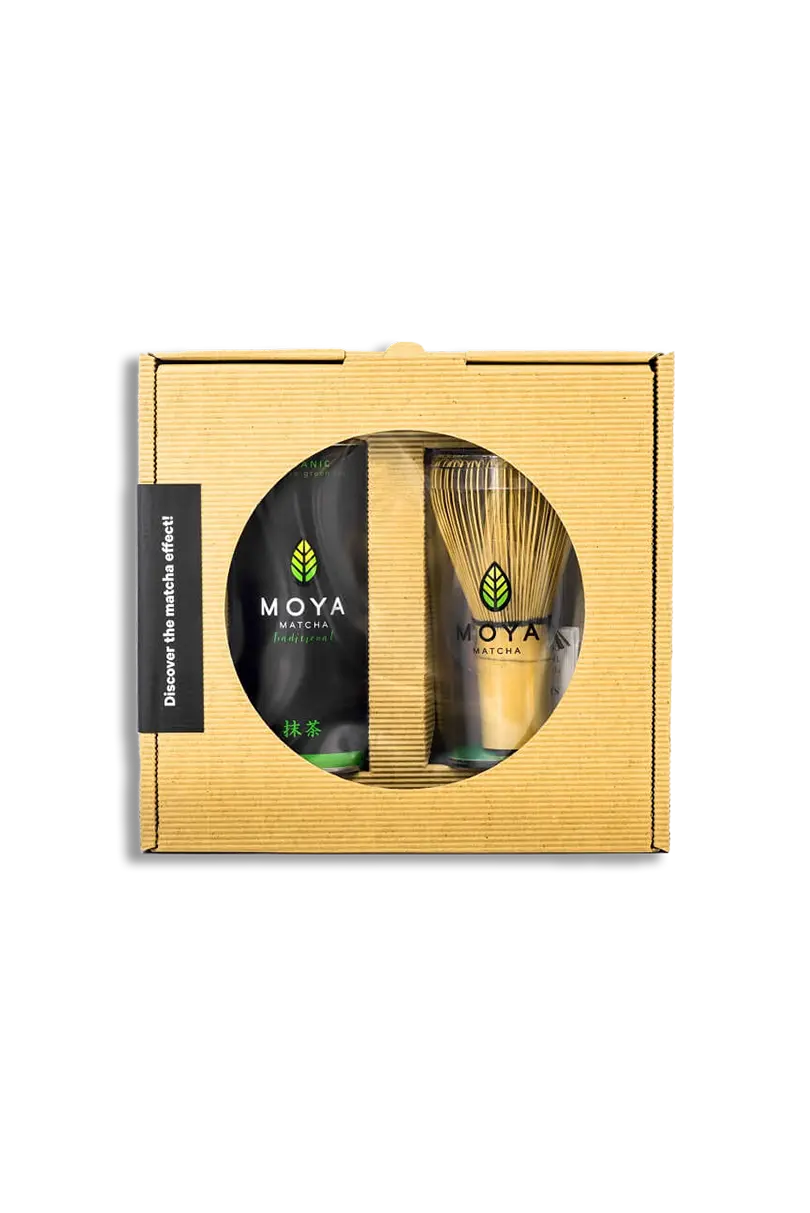 Moya Matcha Tradisjonell sett med 30g te-boks og tradisjonell bambus chasen-visp