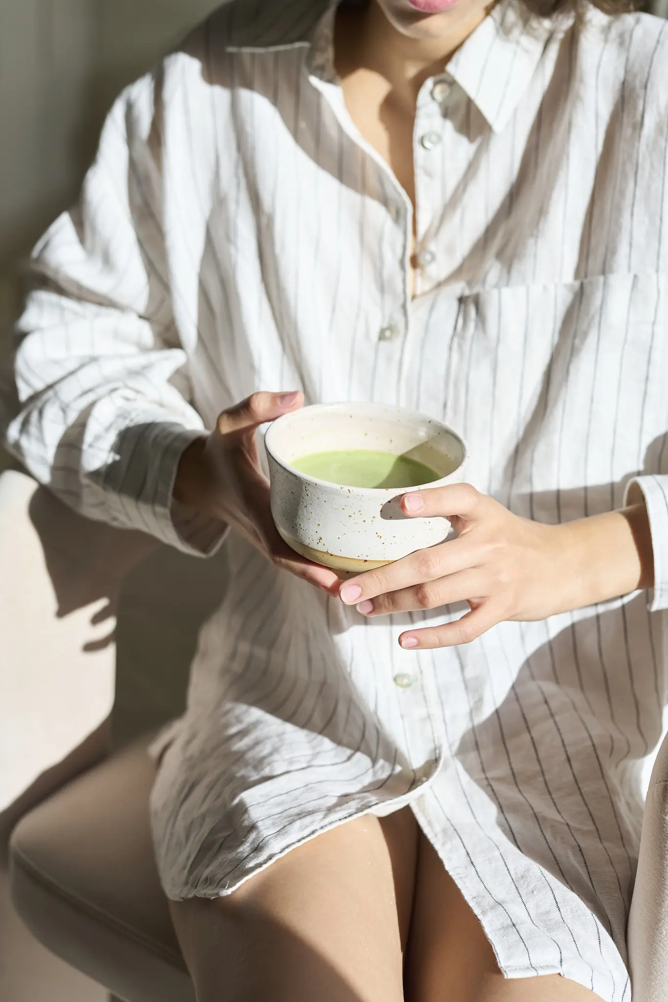 Madaro-bollen kjennetegnes av sitt spesielle uttrykk hvor sporene og fargene fremkaller naturens mystiske side. Bollens lave vegger og brede bunn gjør det svært enkelt å blande din økologiske matcha med vann, noe som raskt skaper et vakkert, skummende lag på overflaten.